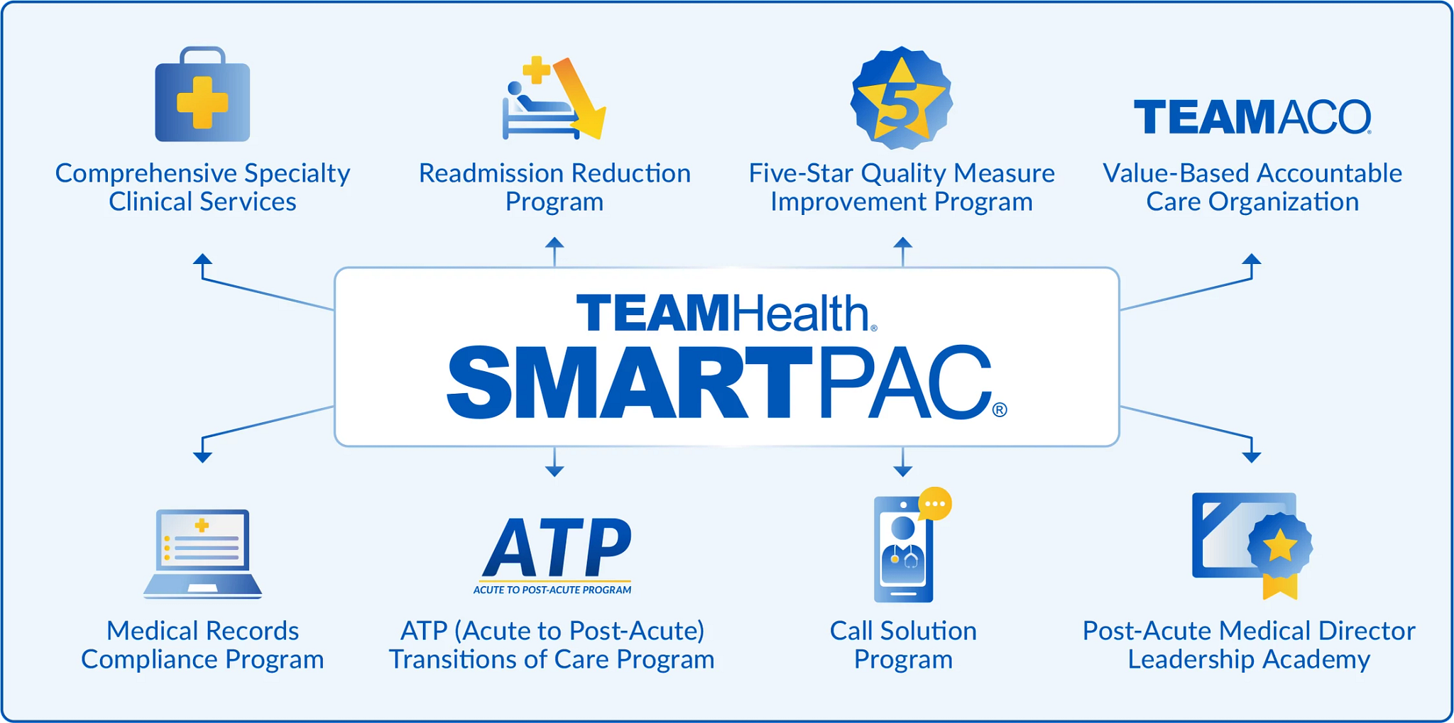 - Enhancing Post-Acute Care: Advancing quality of care for patients while supporting optimal facility performance with comprehensive programs like TeamHealth SmartPAC and engaged clinical teams and leaders guiding the way.